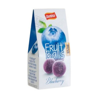 Sunvita kékáfonyás gyümölcsgolyó kékáfonyapor borításban, mely 95% gyümölcstartalmú élelmi rost forrás. Nem tartalmaz hozzáadott cukrot, mesterséges aromát, édesítőszert és színezéket. Kizárólag a gyümölcsökben természetes módon előforduló cukrokat tartalmaz.